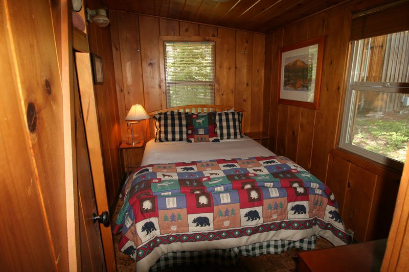 Rainbow is a cabin that is nestled within our grounds that still entertains you with a gorgeous view of the lake and trees as seen within our photos. In this cabin, you have your own fully stocked kitchen, a double bed in the bedroom, and a daybed in the living room. We strongly encourage you to come back to nature and stay within the mountainside at Kit Carson Lodge.
